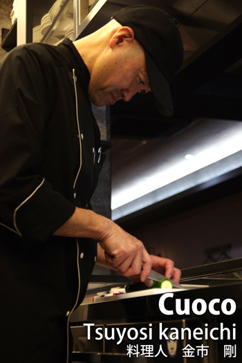 ”さまざまな人に本物を味わって欲しい、コース料理を提供するとなると敷居が高くなりドレスコードやテーブルマナーがあったりするが、そんなのは気にせず、いつもより少しだけお洒落をしてカジュアルに食事を楽しんで欲しい。その料理は自分の手で作り自らが提供することで、来て下さった方との距離を縮めていきたい。そうすることでサービス料も頂かなくてすむ。リーズナブルに本物が楽しめるそんなレストランをやりたい。”